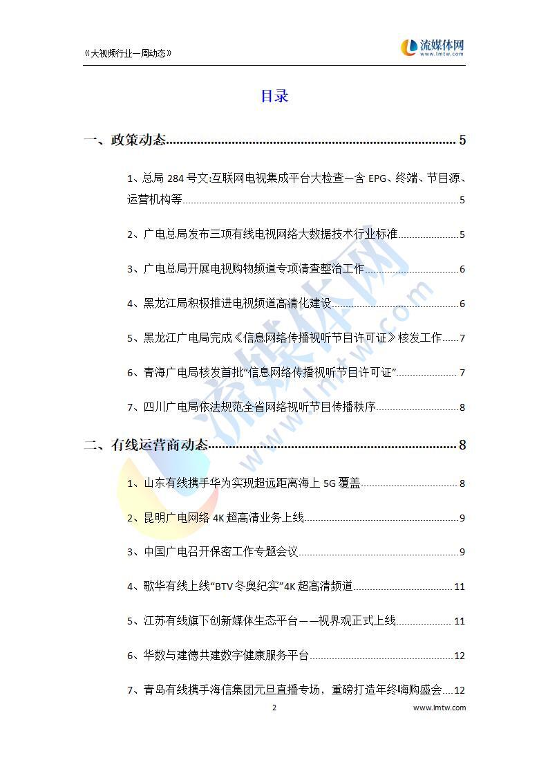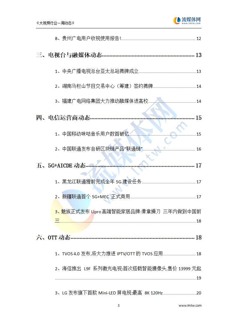 【流媒体网】摘要:本报告详细汇总了2020年12月26日—12月31日国内外IPTV、OTT、互动电视、视频网站以及新兴领域动态方向,供业界参考!今日流媒体VIP会员可免费领取报告PDF版,详情请见文末。