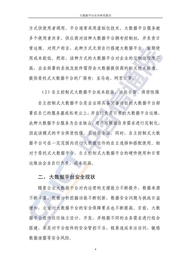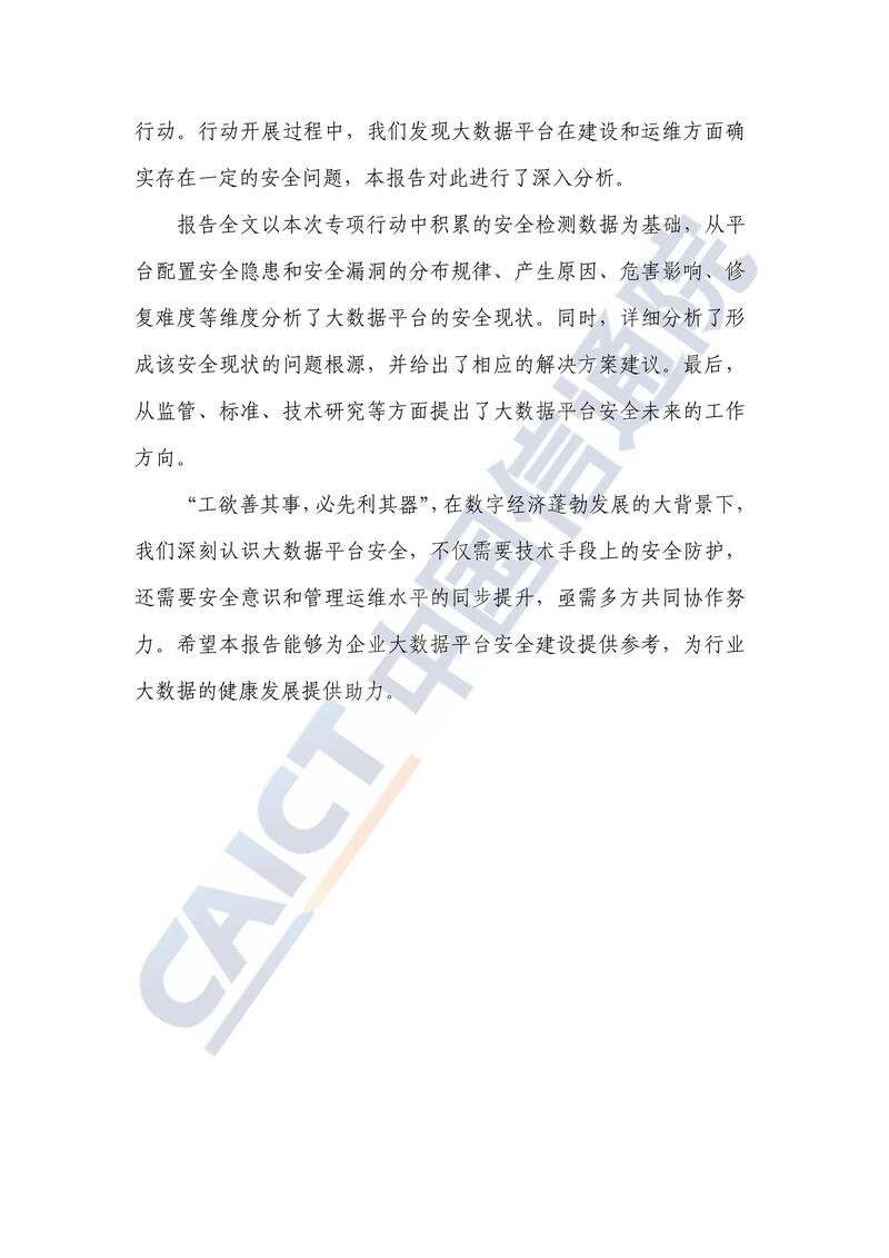 【流媒体网】摘要:《2021年大数据平台安全研究报告》是属于中国通信研究院提供给媒体、公关和相关政府及行业机构作为涉及大数据平台安全状况介绍和研究资料,请相关单位酌情使用,如若本报告阐述之状况、数据与其他机构研究结果有差异,请使用方自行辨别,中国信息通信研究院安全研究所不承担与此相关的一切法律责任。因研究团队能力有限,报告仅作为参考研究,多有纰漏与不足之补.欢迎各领导去家批评指正。(今日流媒体VIP会员可阅读全文!)