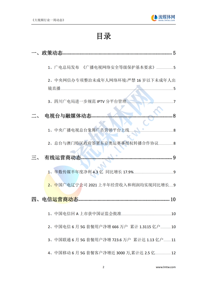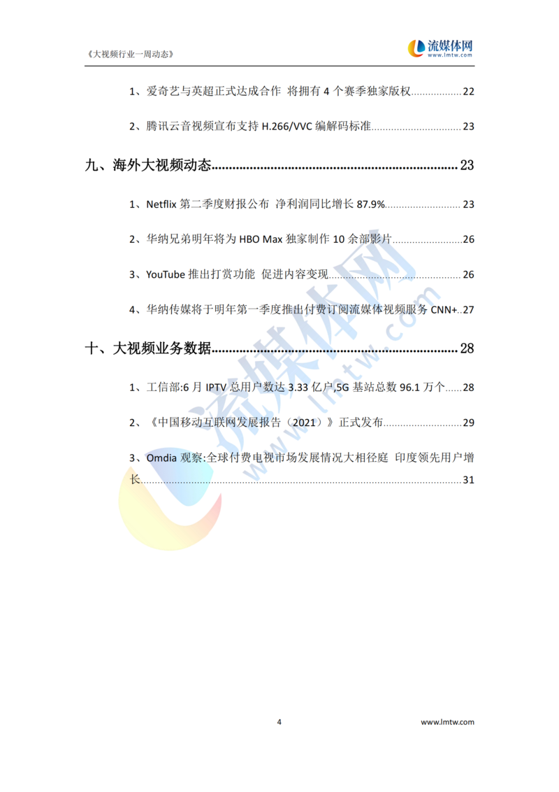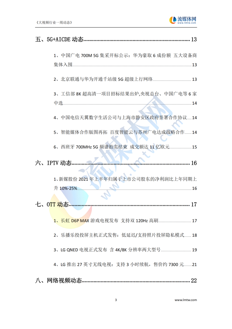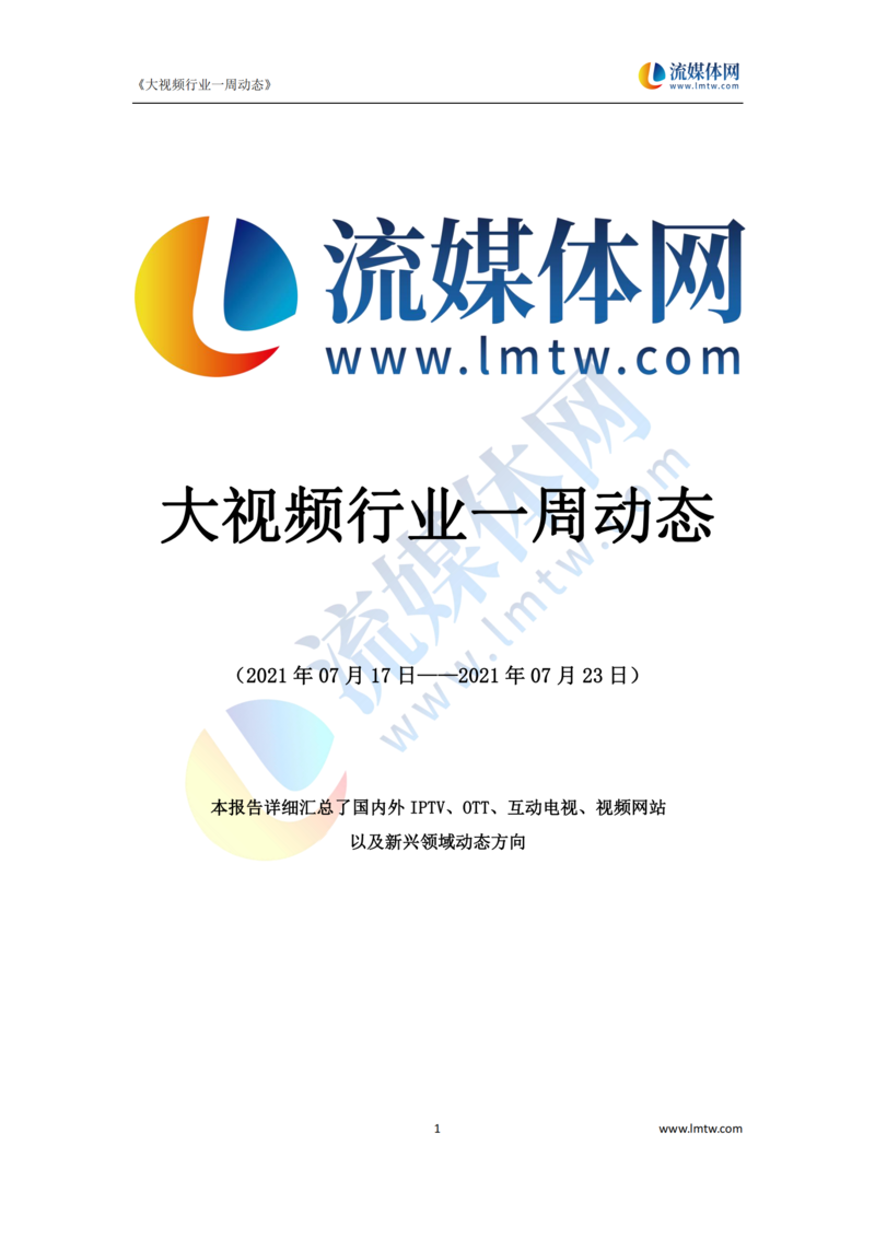 【流媒体网】摘要:本报告详细汇总了2021年7月17日—7月23日国内外IPTV、OTT、互动电视、视频网站以及新兴领域动态方向,供业界参考!今日流媒体vip可免费获取报告PDF版,详情请见文末。