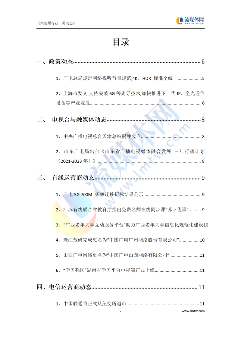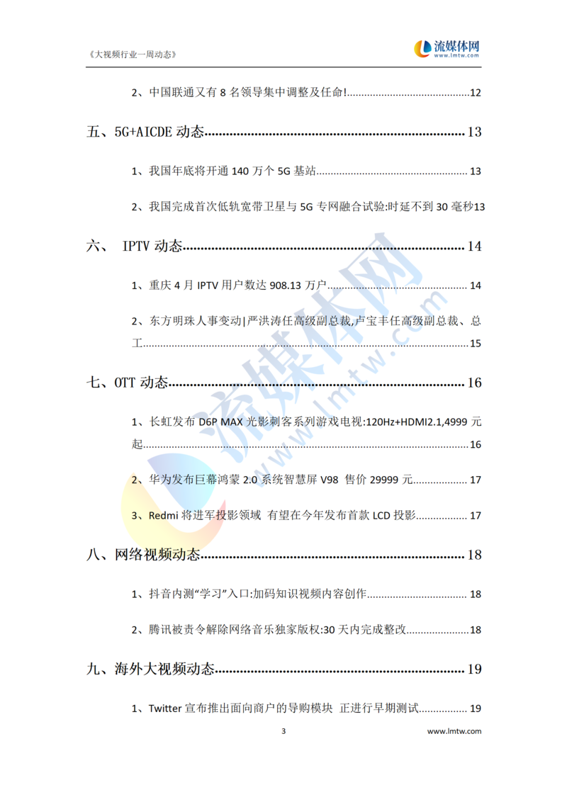 【流媒体网】摘要:本报告详细汇总了2021年7月24日—7月30日国内外IPTV、OTT、互动电视、视频网站以及新兴领域动态方向,供业界参考!今日流媒体vip可免费获取报告PDF版,详情请见文末。