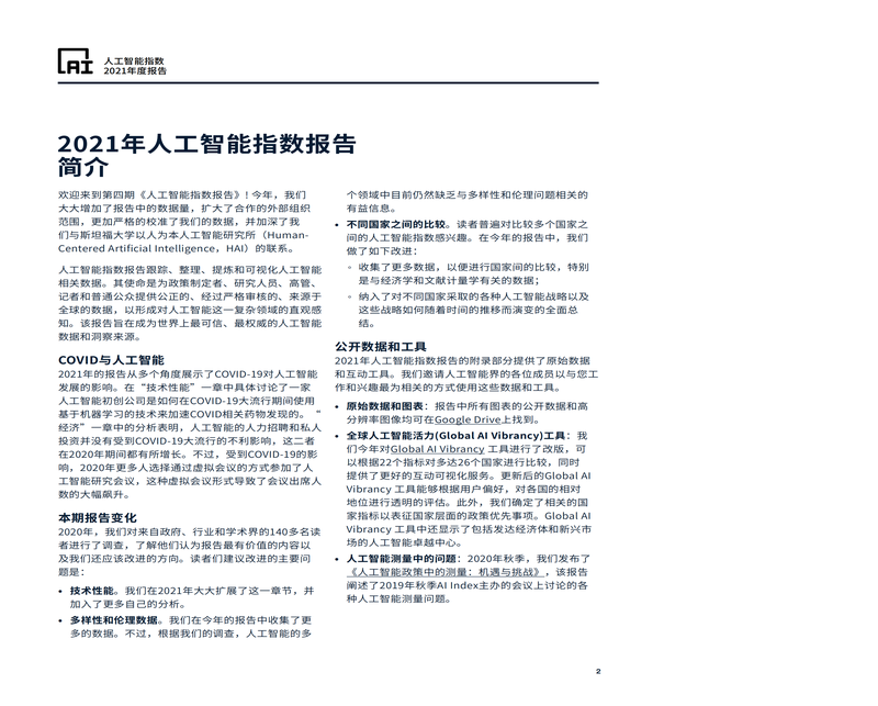 AI之于算力时代,就像灯泡之于电力时代,现在看微不足道,彼时却能改天换地。我们正在打开AI的应用场景,争论拐点是否到来,质变何时发生。《人工智能指数报告2021》特刊应运而生,本报告从多个角度展示了COVID-19对人工智能发展的影响。在“技术性能”一章中具体讨论了一家人工智能初创公司是如何在COVID-19大流行期间使用基于机器学习的技术来加速COVID相关药物发现的。“ 经济”一章中的分析表明,人工智能的人力招聘和私人投资并没有受到COVID-19大流行的不利影响,这二者在2020年期间都有所增长。不过,受到COVID-19的影响,2020年更多人选择通过虚拟会议的方式参加了人工智能研究会议,这种虚拟会议形式导致了会议出席人数的大幅飙升。
