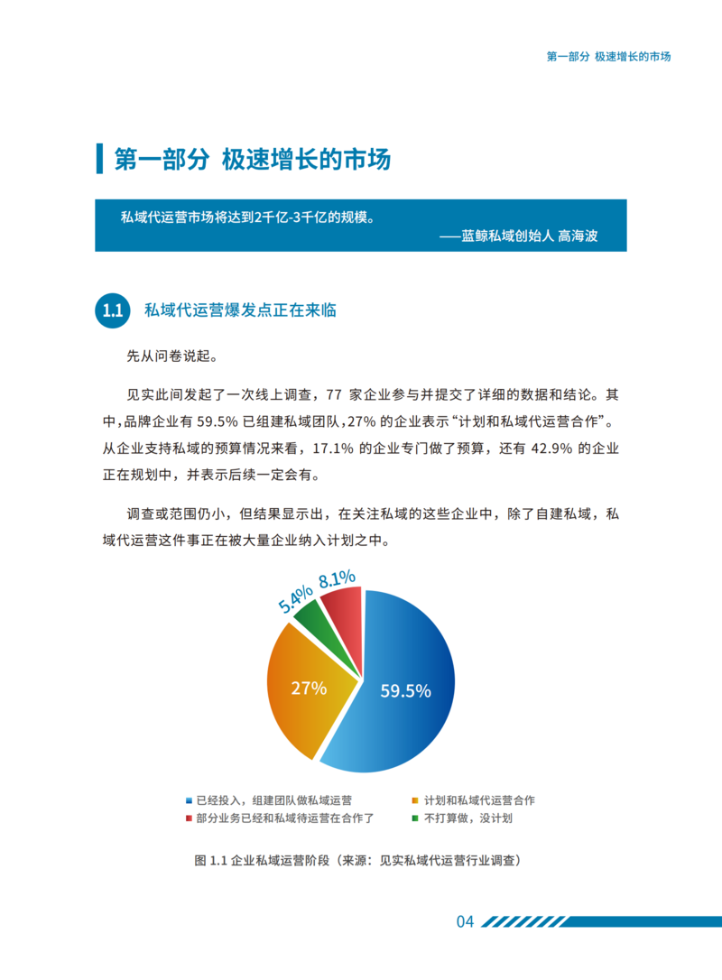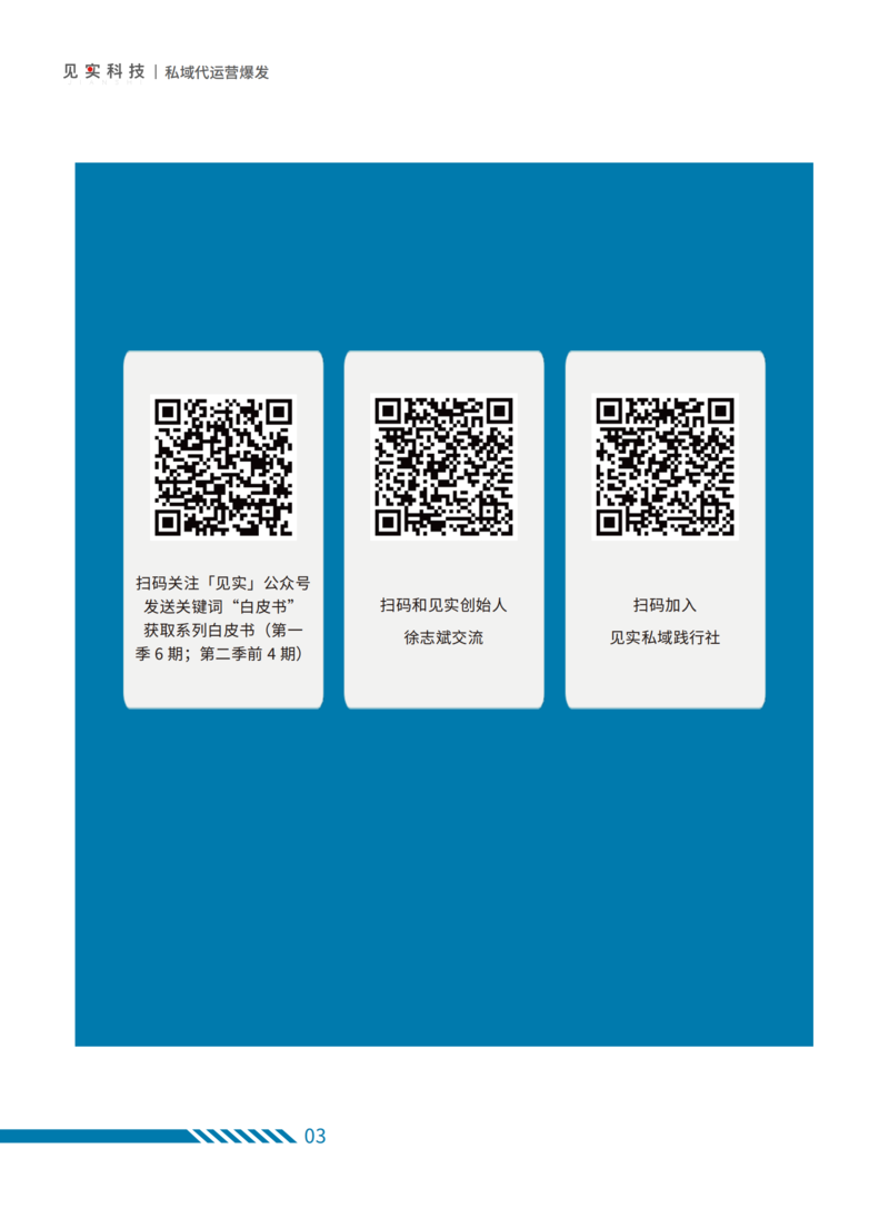 见实着手梳理《私域代运营爆发》白皮书,一方面是为了厘清这个新兴领域的发展与现状,尤其发展趋势和未来变化。一方面也希望能为建立健全私域代运营市场而贡献绵薄之力,引导建立行业规范、行业标准。