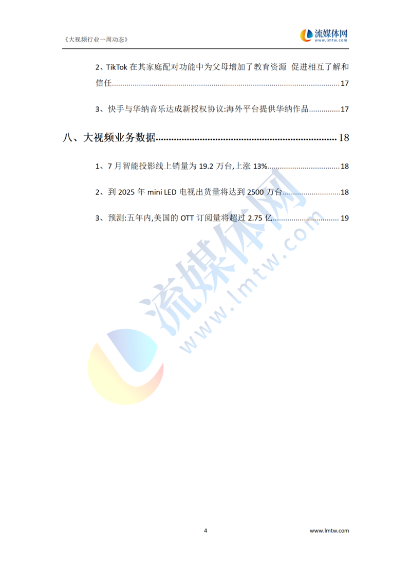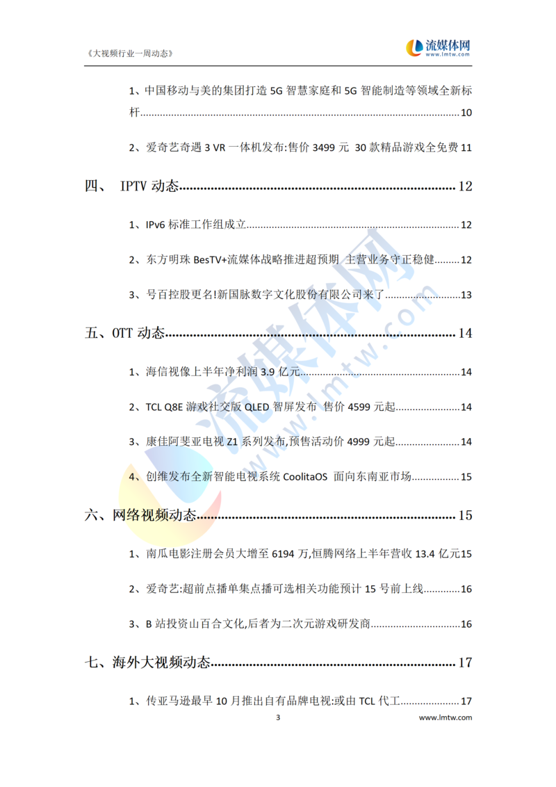 【流媒体网】摘要:本报告详细汇总了2021年8月28日—9月3日国内外IPTV、OTT、互动电视、视频网站以及新兴领域动态方向,供业界参考!今日流媒体vip可免费获取报告PDF版,详情请见文末。