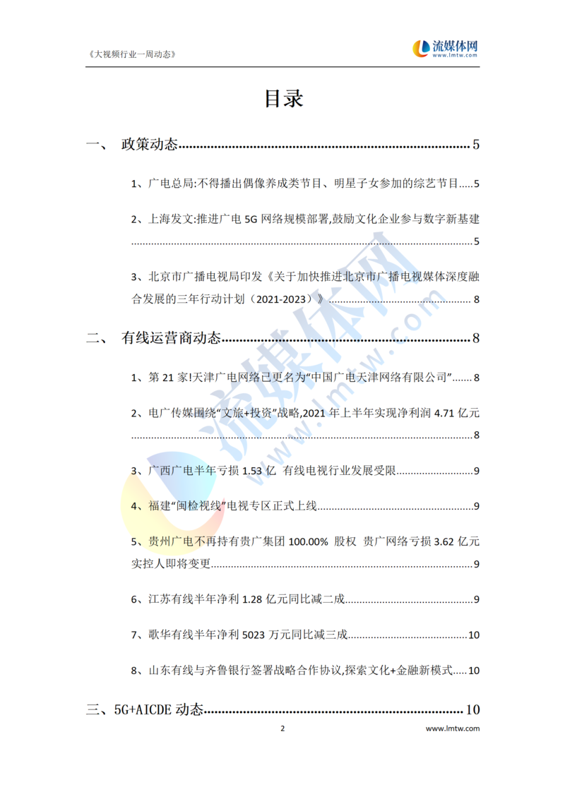 大视频行业一周市场动态报告(2021.8.28-9.03)