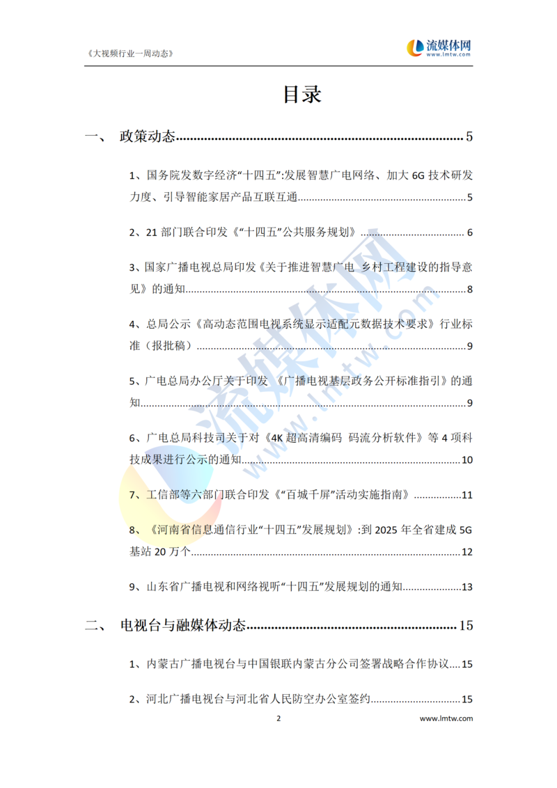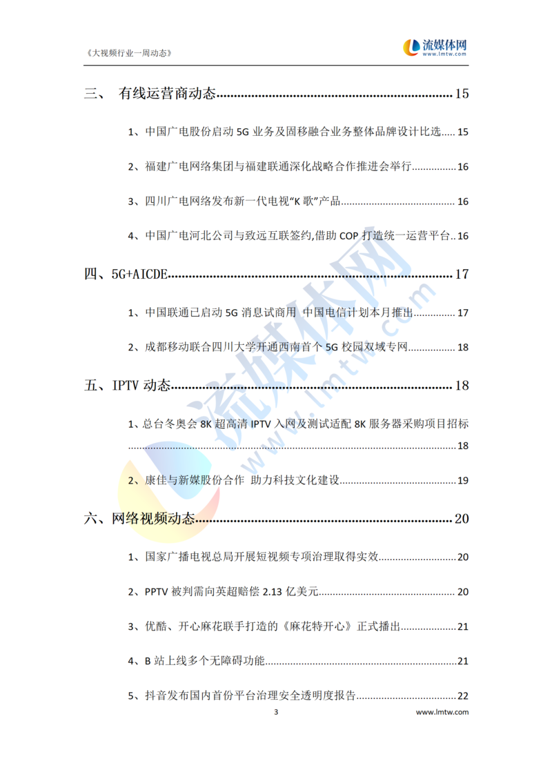 【流媒体网】摘要:本报告详细汇总了2022年1月8日—1月14日国内外IPTV、OTT、互动电视、视频网站以及新兴领域动态方向,供业界参考!今日流媒体vip可免费获取报告PDF版,详情请见文末。