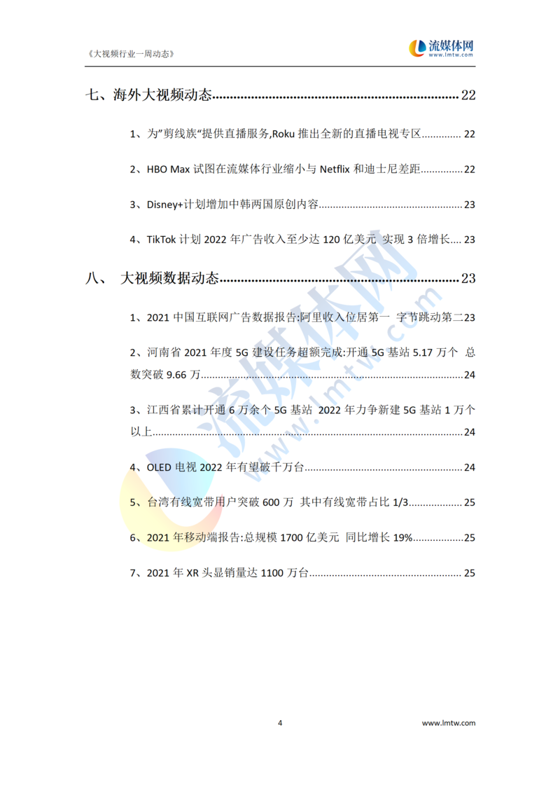 大视频行业一周市场动态报告(2022.1.8-1.14)