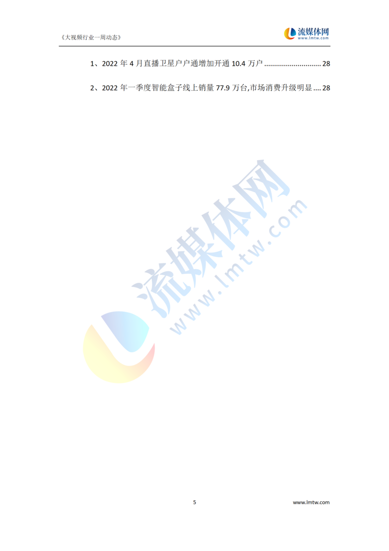大视频行业一周市场动态报告(2022.4.30-5.13)