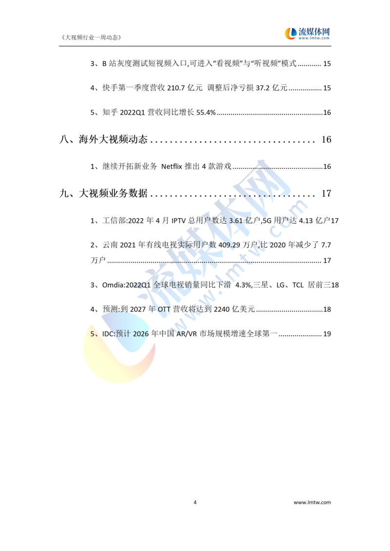 大视频行业一周市场动态报告(2022.5.21-5.27)