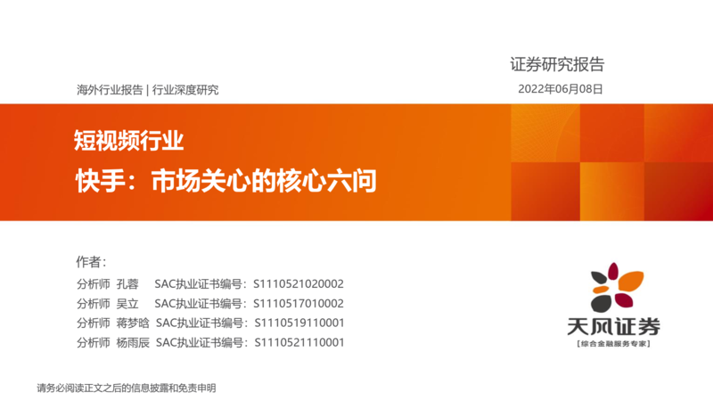 风险提示:用户规模及时长增长不及预期;政策监管风险;第三方数据与实际数据存在偏差;测算偏差风险