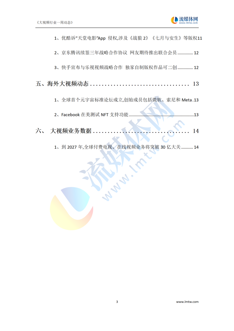 大视频行业一周市场动态报告(2022.6.25-7.1)