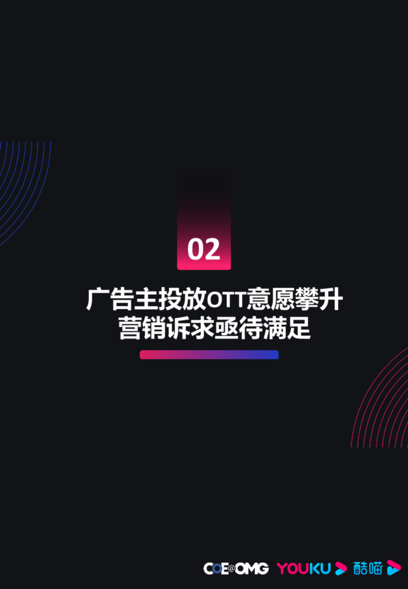 中国市场的电视终端在过去30年间经历了三次浪潮-家庭化、数字化、智能化,随着技术逐步成熟,目前OTT智能大屏已取代传统电视成为了更受欢迎的家庭娱乐方式。OTT全称Over The Top,OTT智能大屏本质上是以互联网为媒介、以智能大屏为终端向用户提供各类服务的方式。随着传统品牌广告资源出现瓶颈,家庭智能大屏作为新价值流量备受广告主关注,OTT TV广告流量份额持续增长。在媒介互联互通,营销全域化的时代,着眼于OTT在家庭场景的数字化营销价值,能在消费者的家庭消费中抢占先机。
