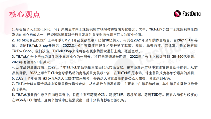 【流媒体网】摘要:TikTok电商在2022年上半年的GMV(商品交易总额)已超10亿美元,与其在2021年全年的体量相当。(文末附有报告全文链接,欢迎今日流媒体VIP会员下载阅读!)