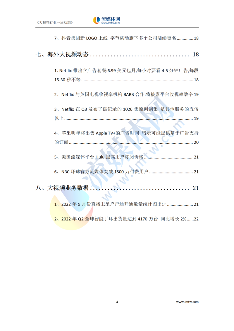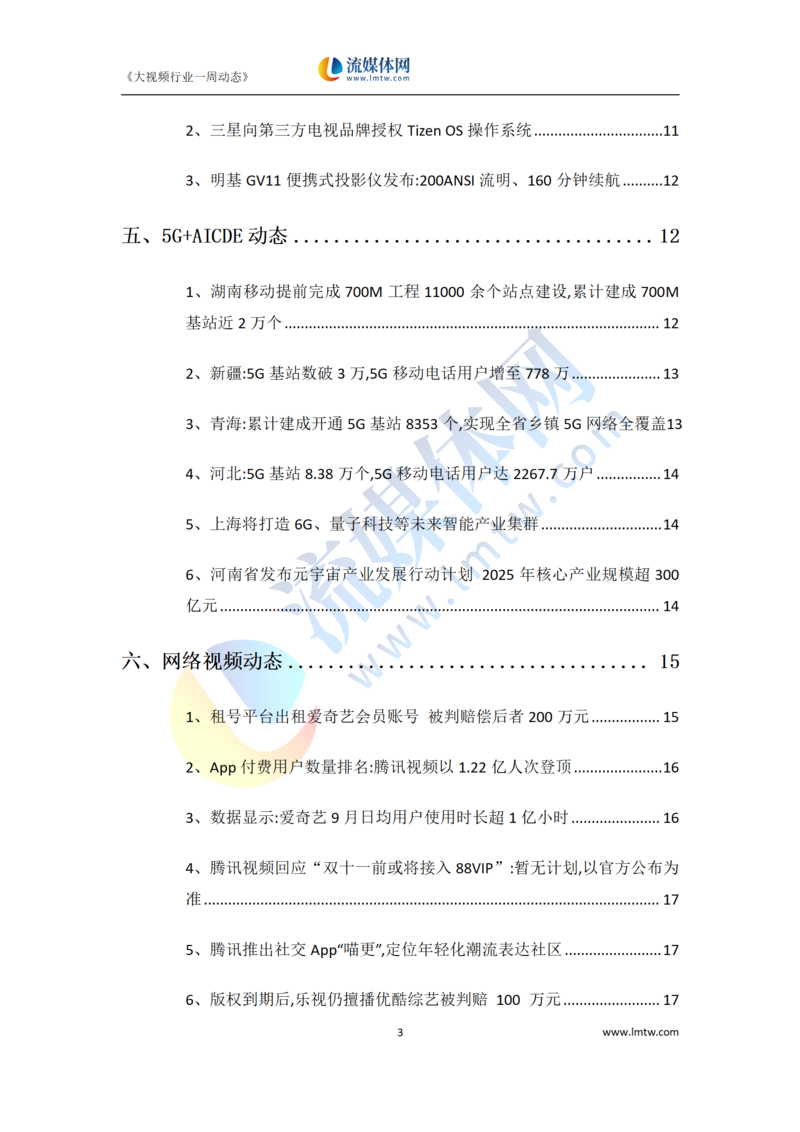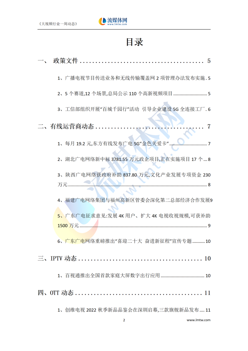 大视频行业一周市场动态报告(2022.10.08-10.14)