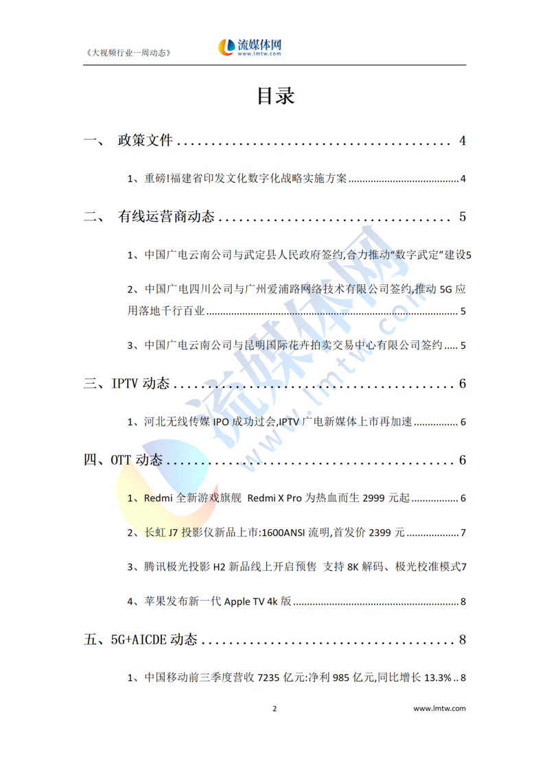 大视频行业一周市场动态报告(2022.10.15-10.21)