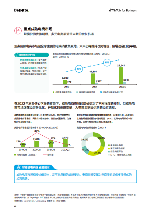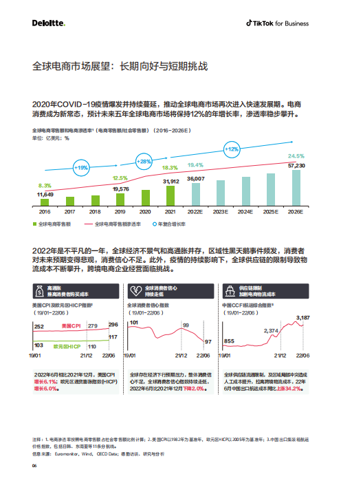 【流媒体网】摘要:展望全球电商市场,长期趋势向好,电商渗透率稳步提升,但短期受到全球宏观经济不景气、高通胀、区域性政治动荡等因素影响,消费信心不足,对跨境电商经营带来一定挑战,修炼好内功是当下的制胜之道。(文末附有报告全文链接,欢迎今日流媒体VIP会员下载阅读!)