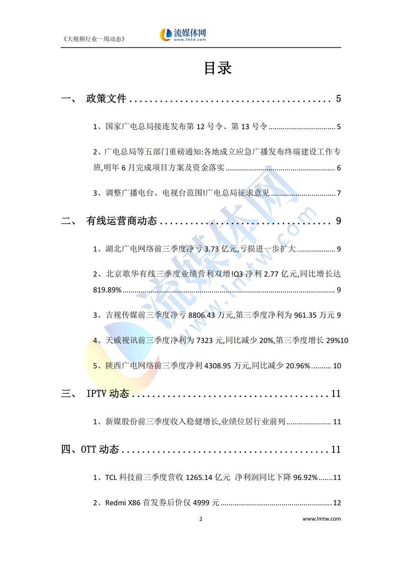 【流媒体网】摘要:本报告详细汇总了2022年10月22日—10月28日国内外IPTV、OTT、互动电视、视频网站以及新兴领域动态方向,供业界参考!今日流媒体vip可免费获取报告PDF版,详情请见文末。