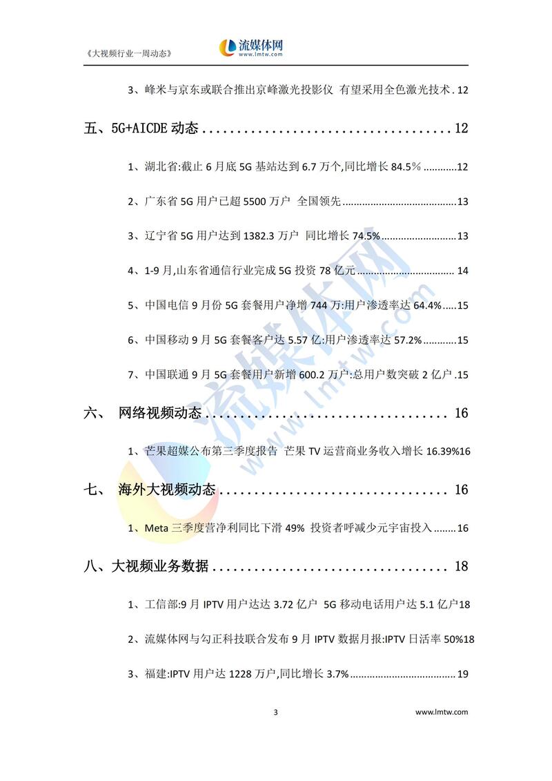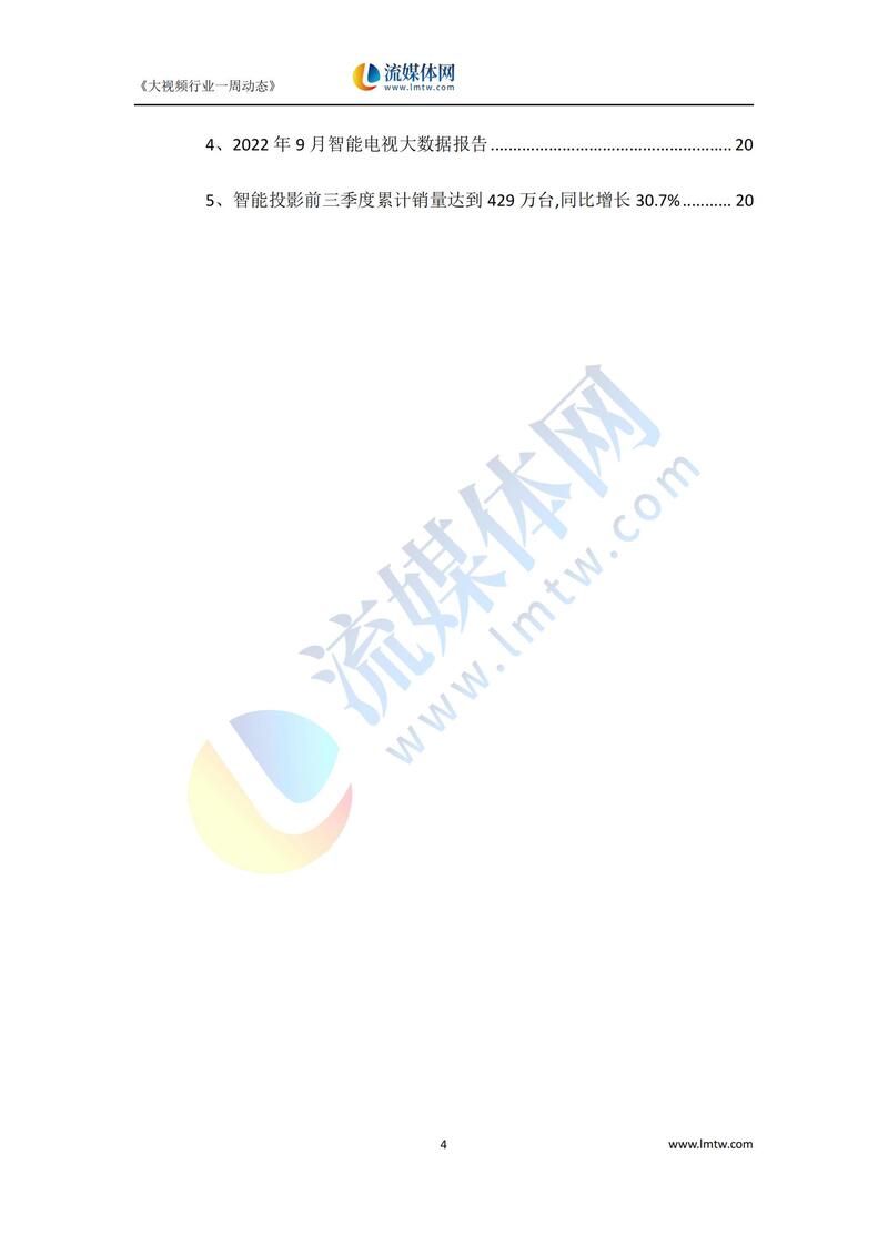 大视频行业一周市场动态报告(2022.10.22-10.28)