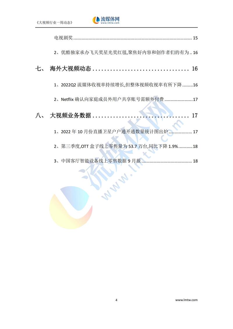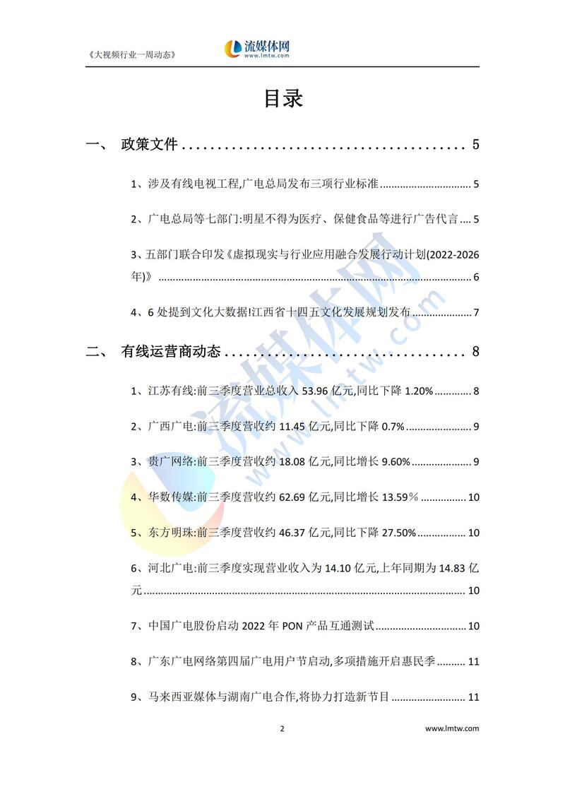 大视频行业一周市场动态报告(2022.10.29-11.04)