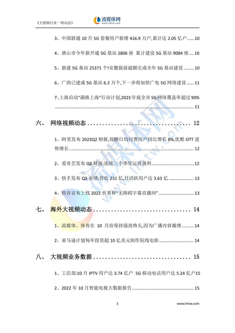 【流媒体网】摘要:本报告详细汇总了2022年11月19日—11月25日国内外IPTV、OTT、互动电视、视频网站以及新兴领域动态方向,供业界参考!今日流媒体vip可免费获取报告PDF版,详情请见文末。
