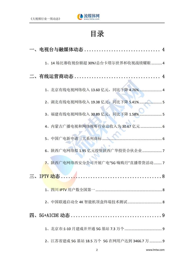 【流媒体网】摘要:本报告详细汇总了2022年11月26日—12月02日国内外IPTV、OTT、互动电视、视频网站以及新兴领域动态方向,供业界参考!今日流媒体vip可免费获取报告PDF版,详情请见文末。