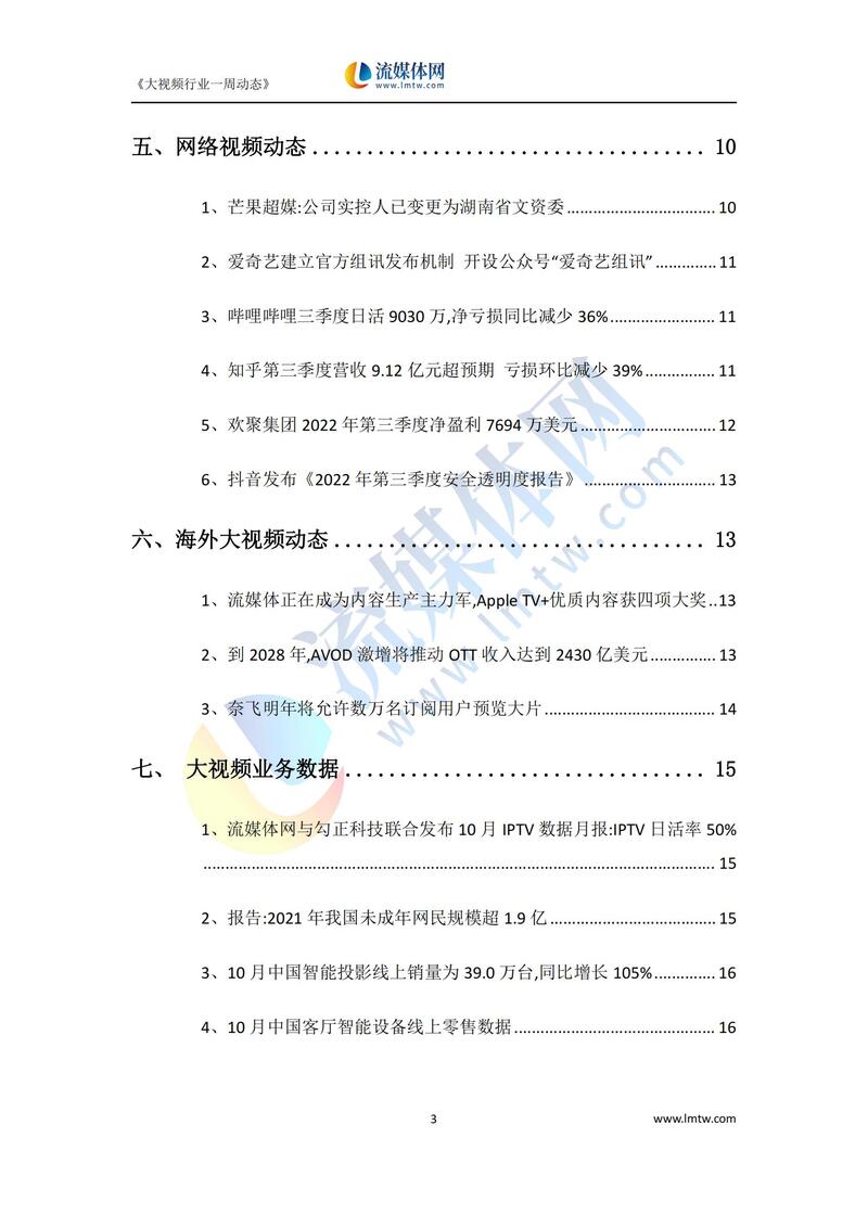 大视频行业一周市场动态报告(2022.11.26-12.02)