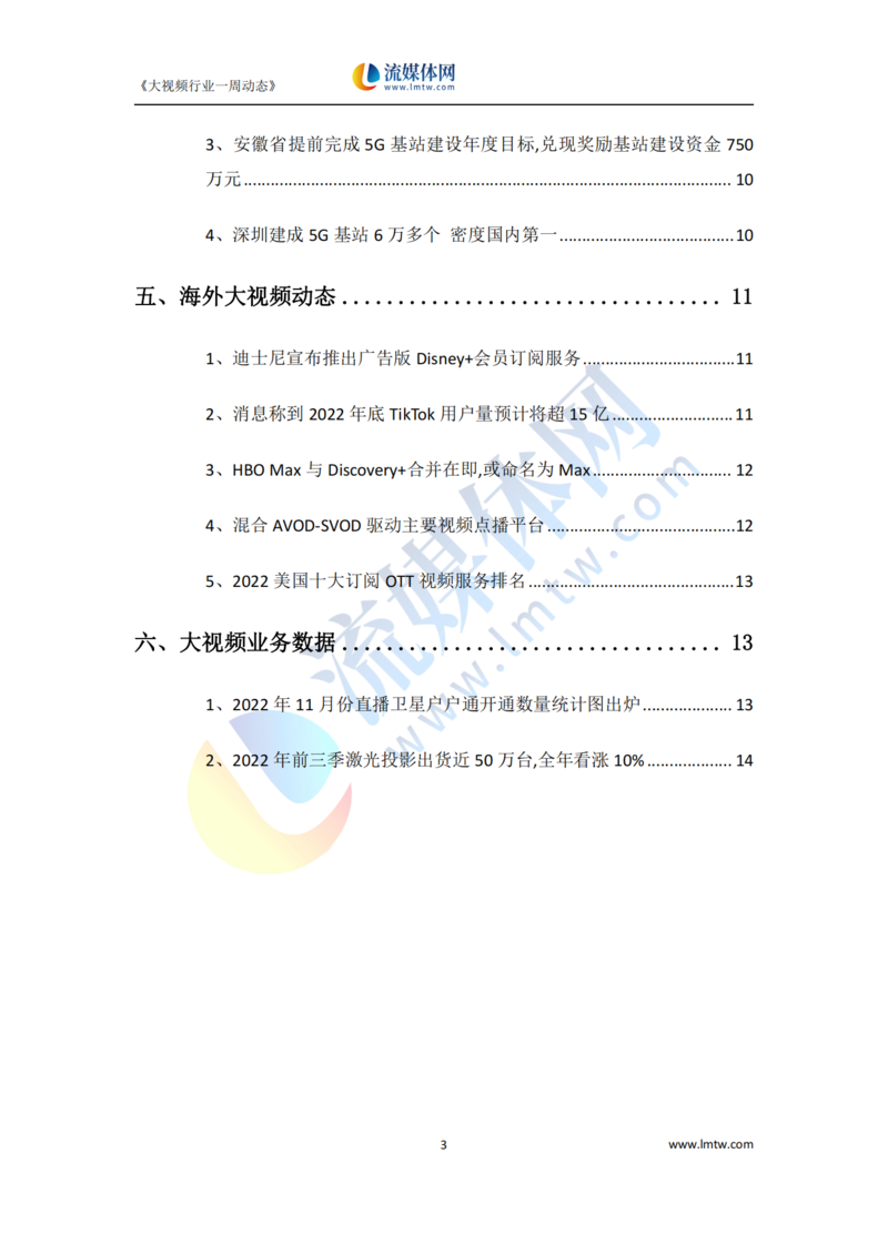 大视频行业一周市场动态报告(2022.12.03-12.09)