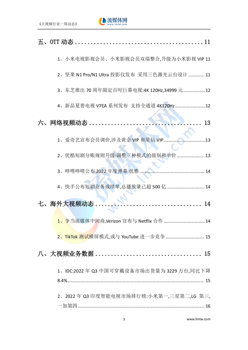 大视频行业一周市场动态报告(2022.12.10-12.16)