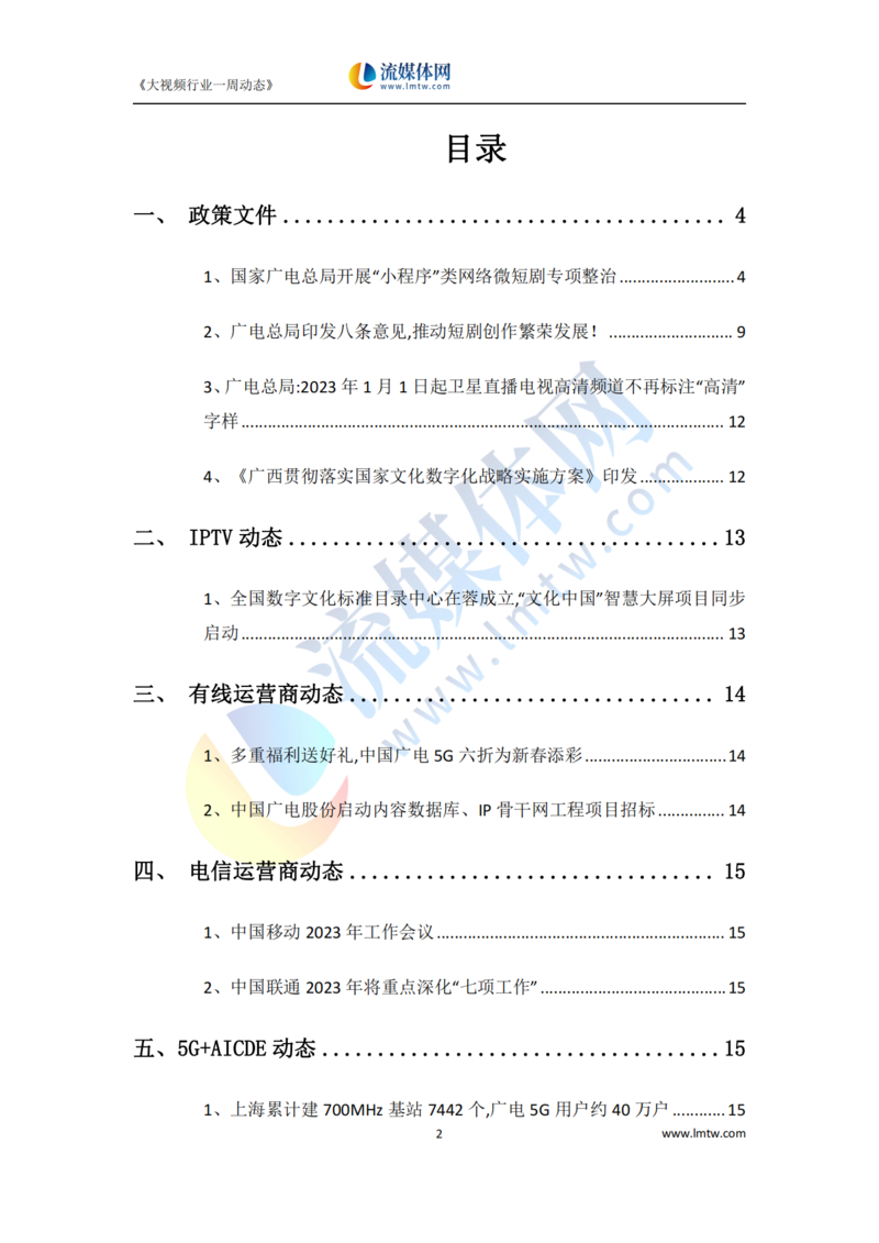 【流媒体网】摘要:本报告详细汇总了2022年12月24日—12月30日国内外IPTV、OTT、互动电视、视频网站以及新兴领域动态方向,供业界参考!今日流媒体vip可免费获取报告PDF版,详情请见文末。