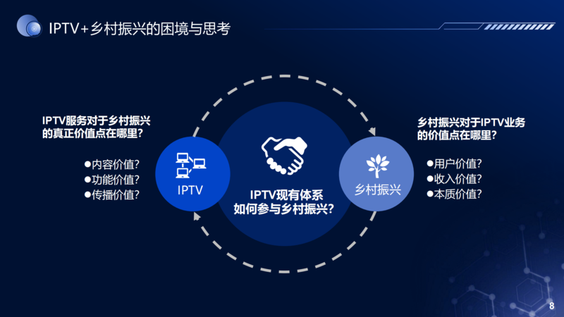 【流媒体网】摘要:对IPTV来讲,IPTV服务乡村振兴真正的价值点在哪里?这是我们首要面临的困惑。(文末附有PPT全文链接,欢迎今日流媒体VIP下载阅读!)