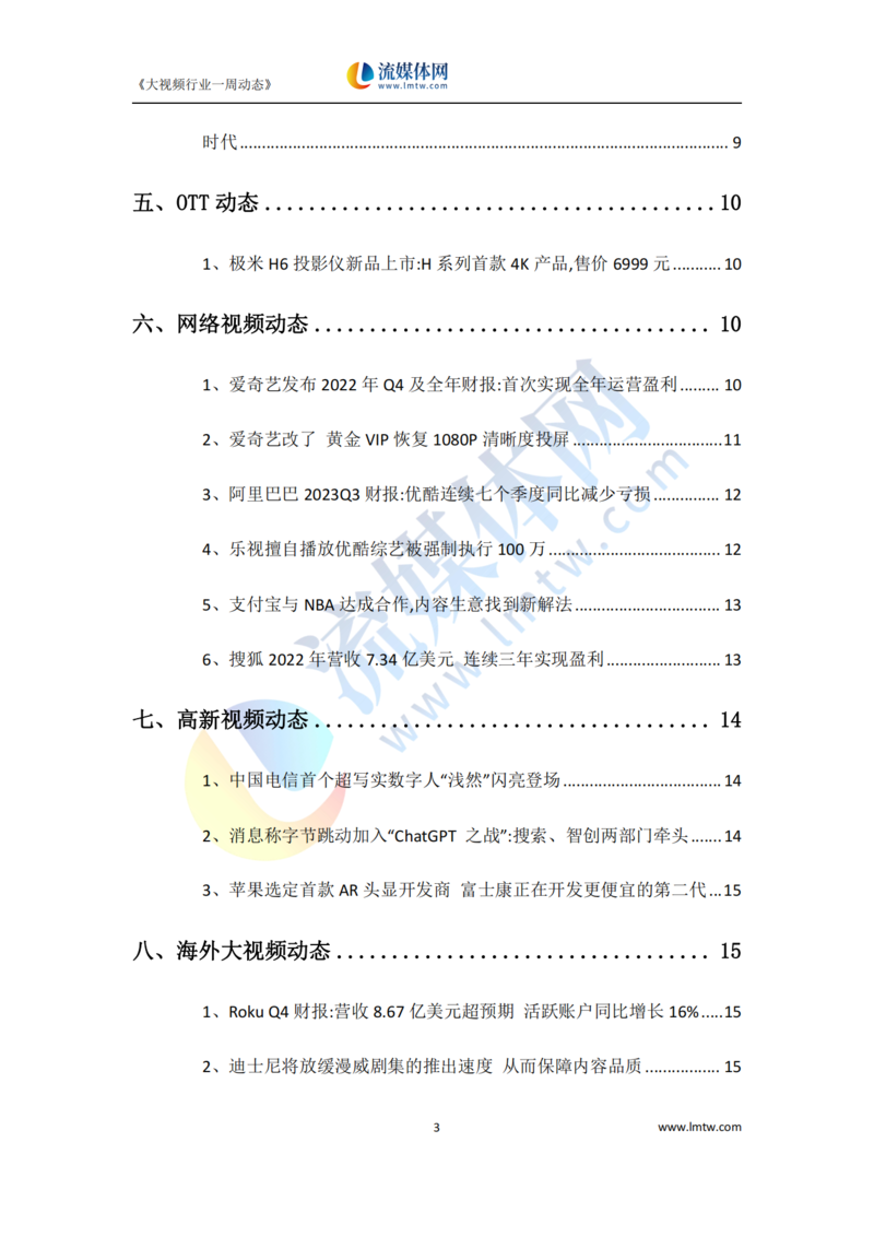 大视频行业一周市场动态报告(2023.02.18-02.24)