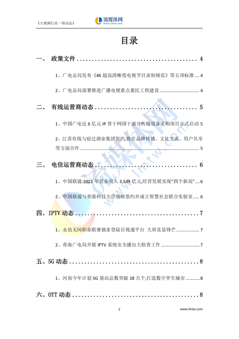 【流媒体网】摘要:本报告详细汇总了2023年03月04日—03月10日国内外IPTV、OTT、互动电视、视频网站以及新兴领域动态方向,供业界参考!今日流媒体vip可免费获取报告PDF版,详情请见文末。