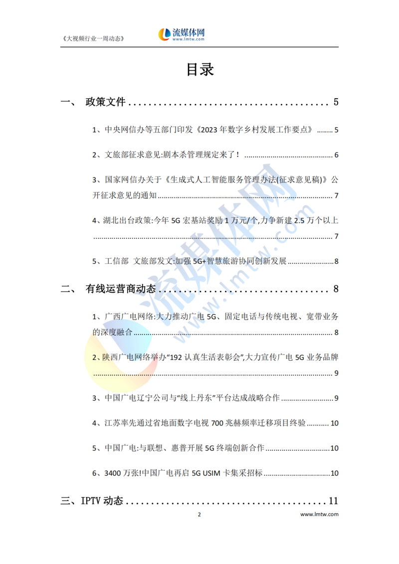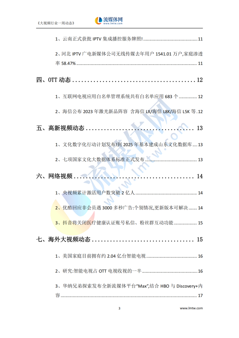 【流媒体网】摘要:本报告详细汇总了2023年04月08日—04月14日国内外IPTV、OTT、互动电视、视频网站以及新兴领域动态方向,供业界参考!今日流媒体vip可免费获取报告PDF版,详情请见文末。
