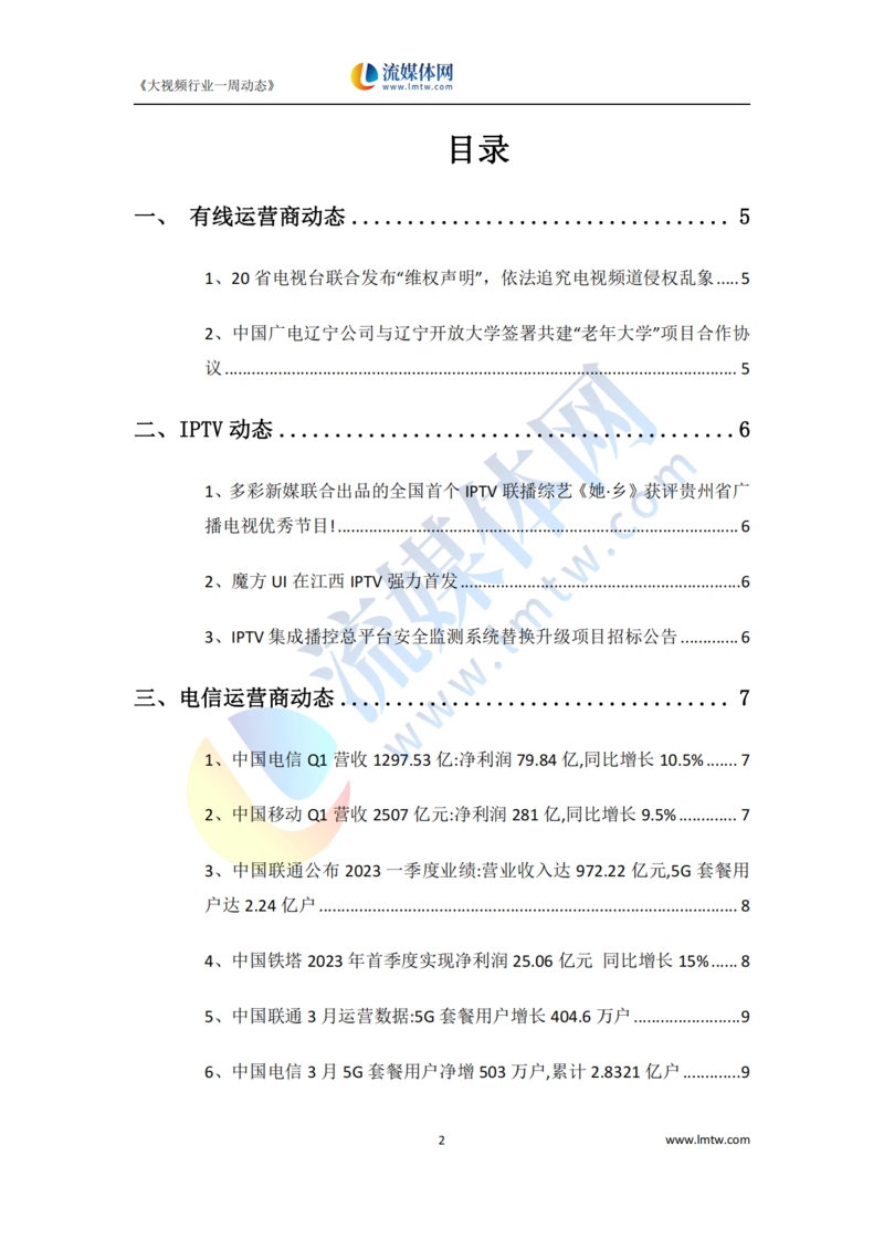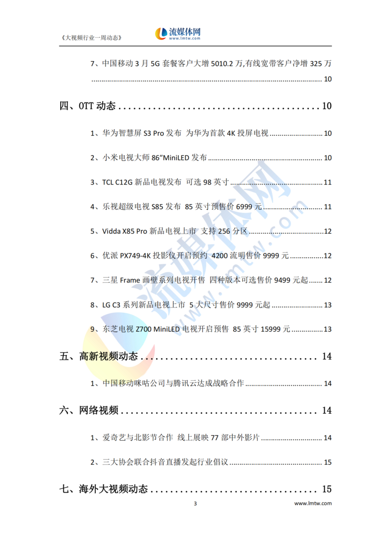 大视频行业一周市场动态报告(2023.04.15-04.21)