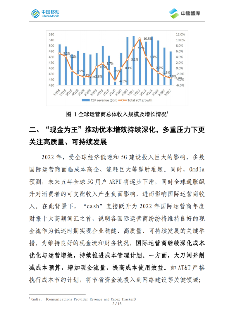 【流媒体网】摘要:随着全球经济进入下行区间,国际运商营收增长压力将进一步加大,稳增长成未来几年核心经营目标。(文末附有报告全文链接,欢迎今日流媒体VIP会员下载阅读!)