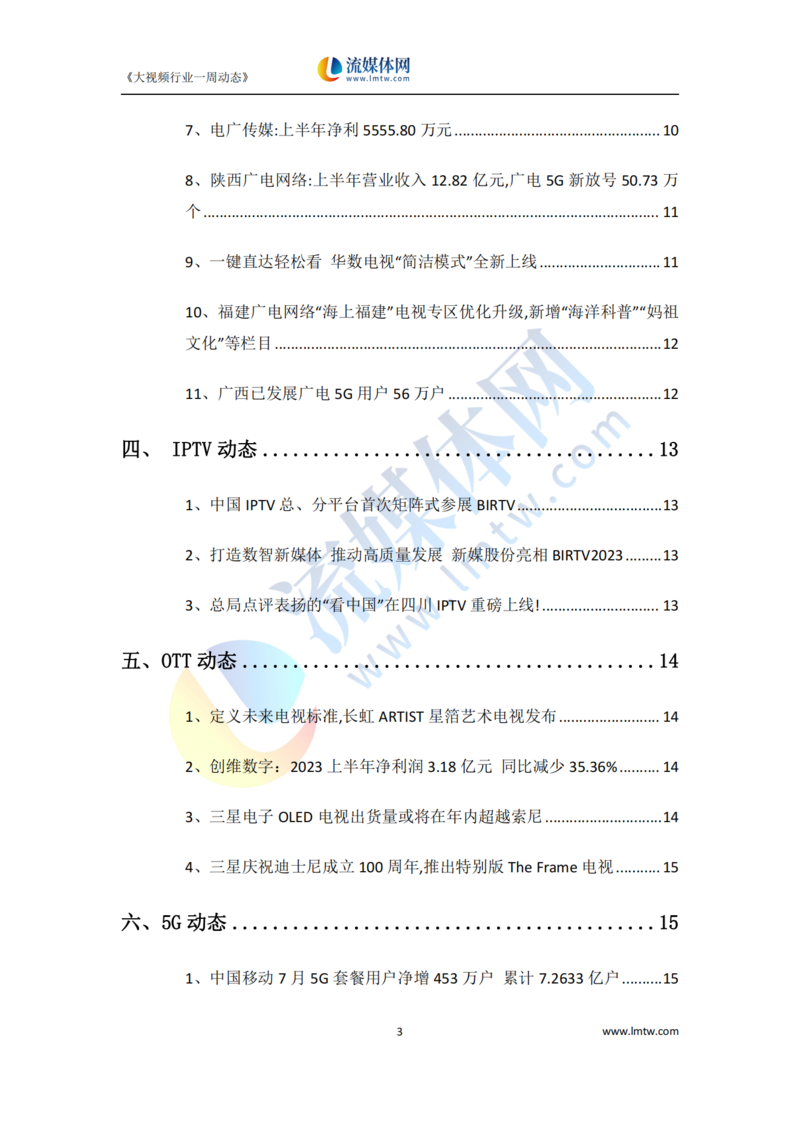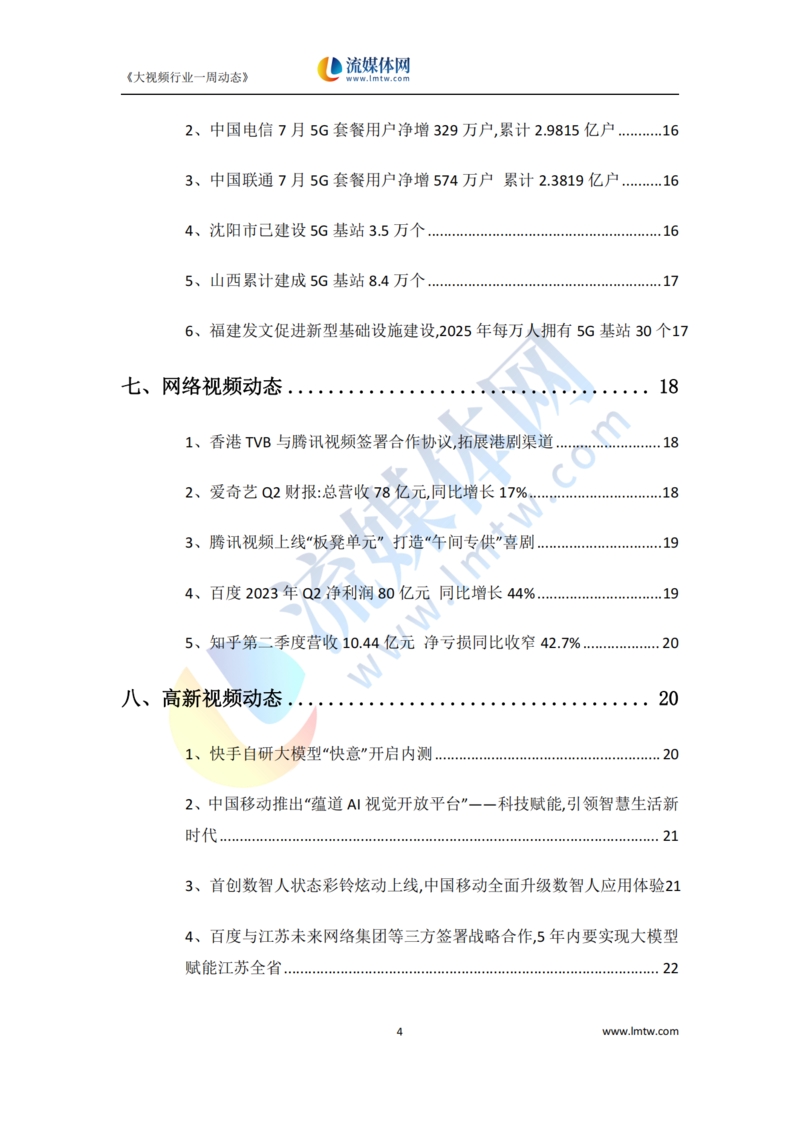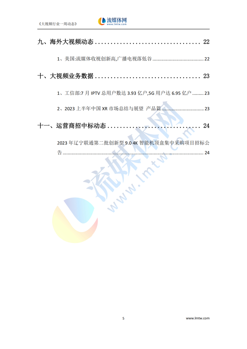 大视频行业一周市场动态报告(2023.08.19-08.25)