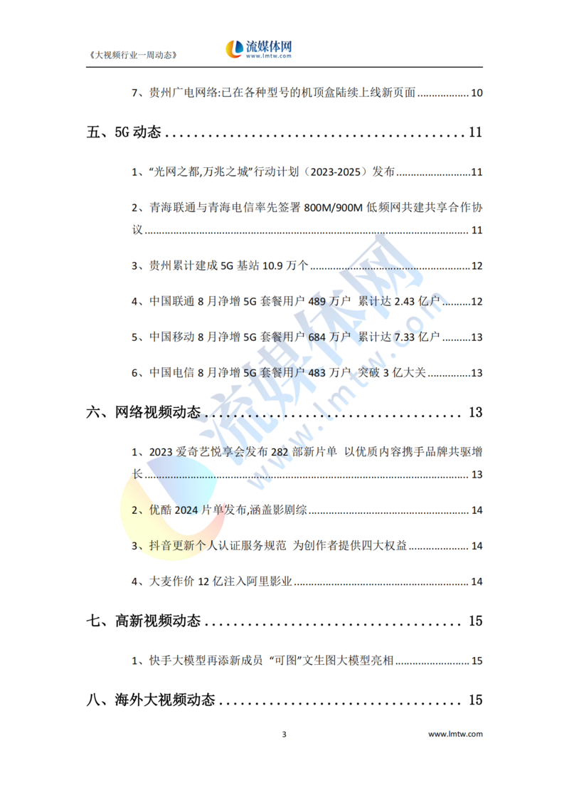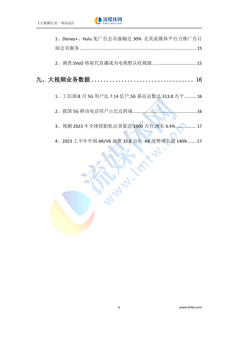 大视频行业一周市场动态报告(2023.09.16-09.22)