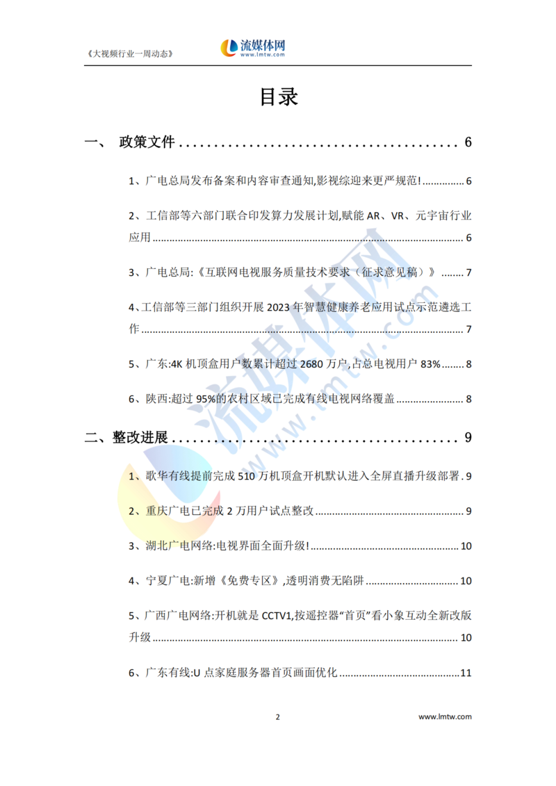 大视频行业一周市场动态报告(2023.10.07-10.13)