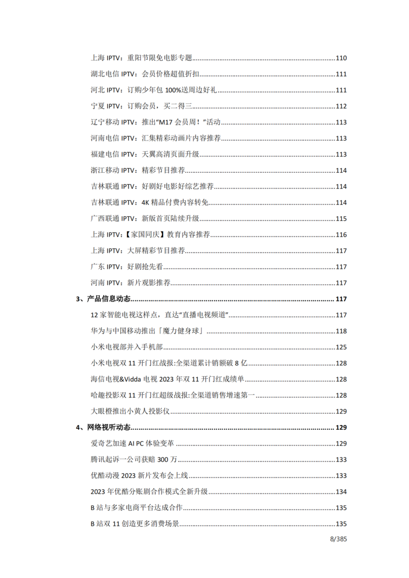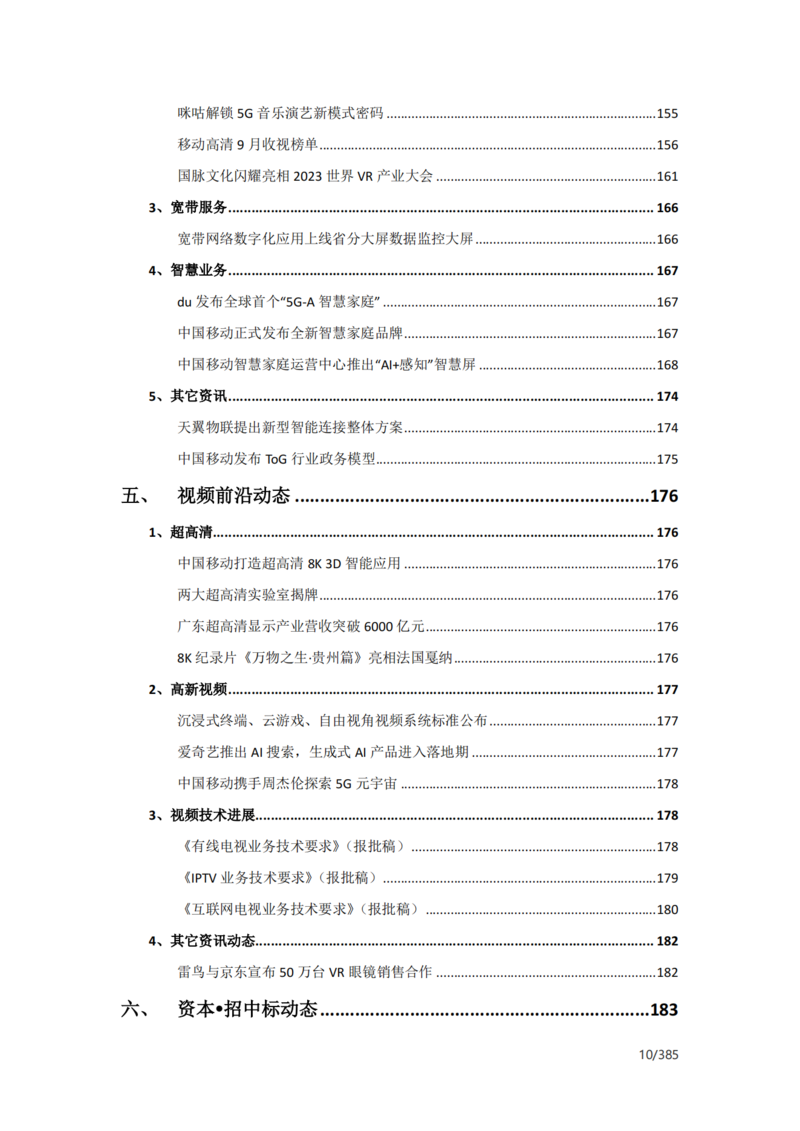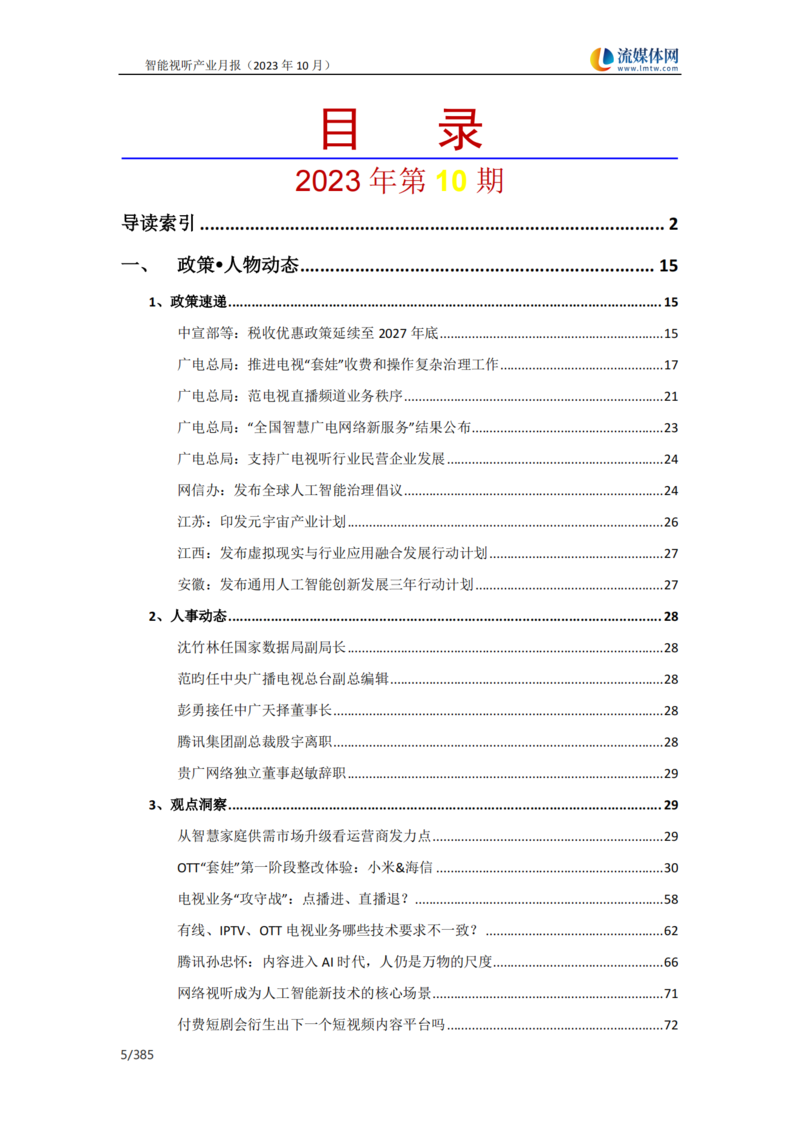 以下是《智能视听产业月报(2023年10月)》导读索引及目录: