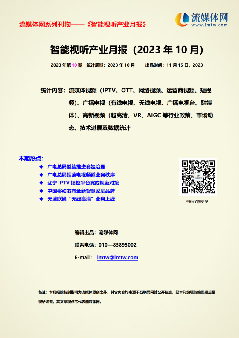 本报告于每月10日左右定期推出,每期约10万字,读者可添加流媒体网小六(lmtw_com)、小美(lmtw_TVdata)微信了解及订阅。