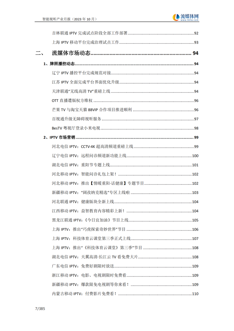 【流媒体网】摘要:包含套娃整改进展特别专题,及国内外视听前沿动态等。