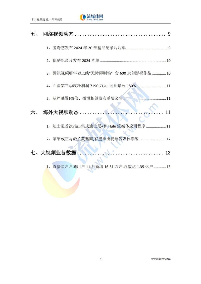 【下载】大视频行业一周市场动态报告(2023.12.02-12.08)