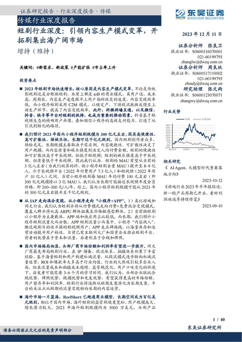 【流媒体网】摘要:短剧行业引领内容生产模式变革,开拓剧集出海广阔市场。(文末附有报告全文链接,欢迎今日流媒体VIP会员下载阅读!)