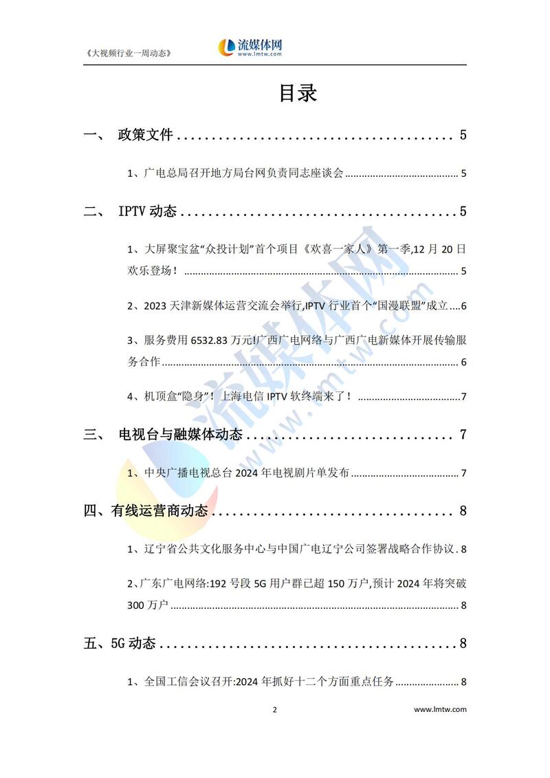 【流媒体网】摘要:本报告详细汇总了2023年12月16日—12月22日国内外IPTV、OTT、互动电视、视频网站以及新兴领域动态方向,供业界参考!