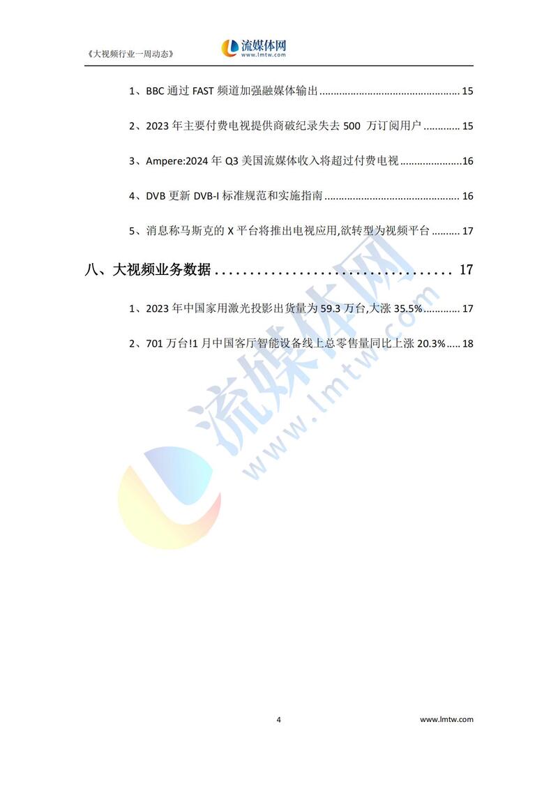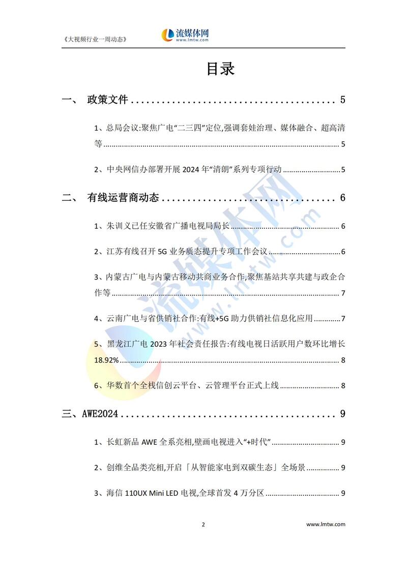 【流媒体网】摘要:本报告详细汇总了2024年3月09日—2024年3月15日国内外IPTV、OTT、互动电视、视频网站以及新兴领域动态方向,供业界参考!