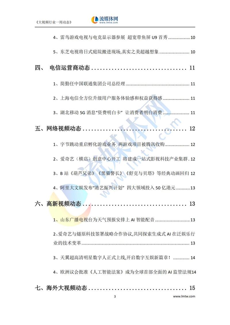 【下载】大视频行业一周市场动态报告(2024.3.09-3.15)