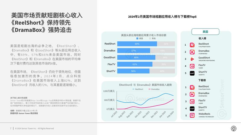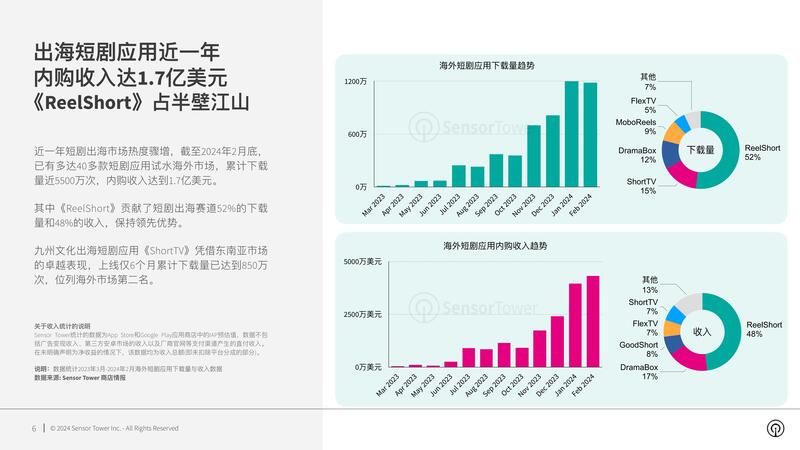 报告提供2024年关于App Store和Google Play渠道短剧应用出海市场的深度分析。其中包括海外市场短剧应用整体收入和下载量趋势,热门应用收入排行榜,不同市场头部短剧应用表现等。报告通过经典案例分析,解码热门短剧应用成功出海的关键要素。