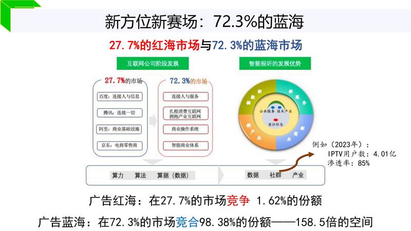 【流媒体网】摘要:IPTV、OTT企业都有显著的发展优势,2023年,IPTV用户数达到了4.01亿,家庭渗透率达到了85%,我们左脚已经进入新高地,右脚就看如何迈出创新的步伐。
