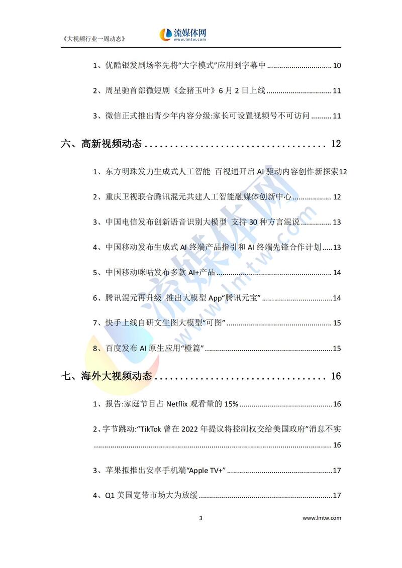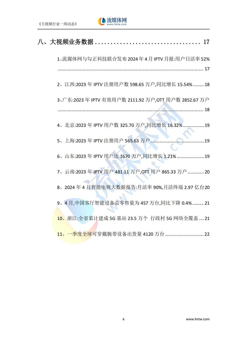 【流媒体网】摘要:本报告详细汇总了2024年5月25日—2024年5月31日国内外IPTV、OTT、互动电视、视频网站以及新兴领域动态方向,供业界参考!