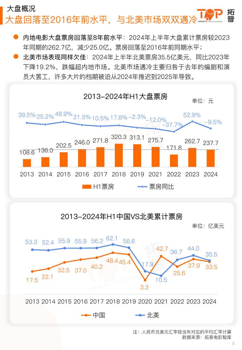 【流媒体网】摘要:2024年上半年内地电影总票房237.73亿,同比下降9.50%。(文末附有报告全文链接,欢迎今日流媒体VIP会员下载阅读!)