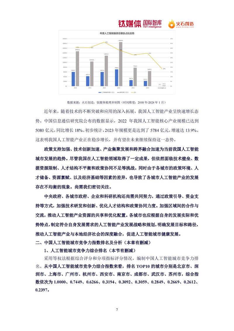 下载→《2024中国人工智能城市竞争力排行研究报告》